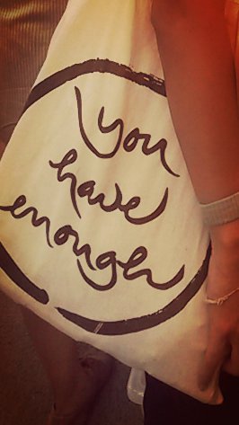 ‘You have enough’, staat gedrukt op een tasje dat ik kocht in meditatie-oord Plum Village. Het is een kreet van Thich Nhat Hanh. De Vietnamese Boeddhistische leermeester zegt dat er voor iedereen meer dan genoeg condities aanwezig zijn om hier en nu gelukkig te zijn. ‘Je hoeft niet naar de toekomst te rennen voor meer en meer.’ Of zoals de filosoof Socrates, die geloofde dat ieder wijs persoon een simpel en tevreden leven kan leiden. De Griekse wijsgeer struinde tot verbazing van velen urenlang op z’n blote voeten over de markt, niet om spullen te kopen, maar om z’n ogen de kost te geven. Hij zei: ‘Ik hou ervan om daar rond te lopen en te ontdekken hoeveel dingen ik niet nodig heb om gelukkig te zijn.’